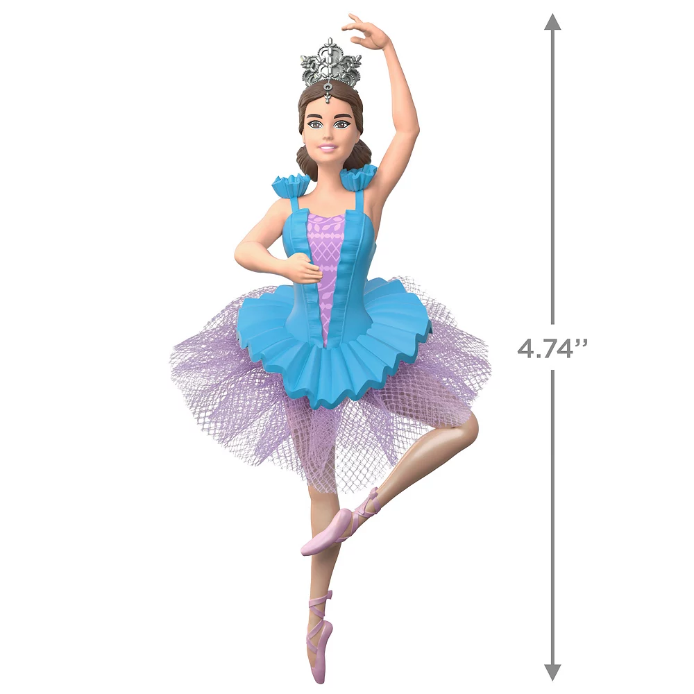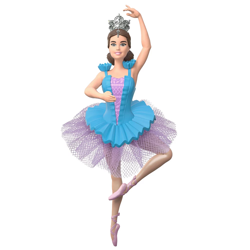 - The beautiful Barbie Christmas tree ornament inspires in her ballet pointe shoes, tiara, and elegant leotard with scalloped tutu and tulle layer
