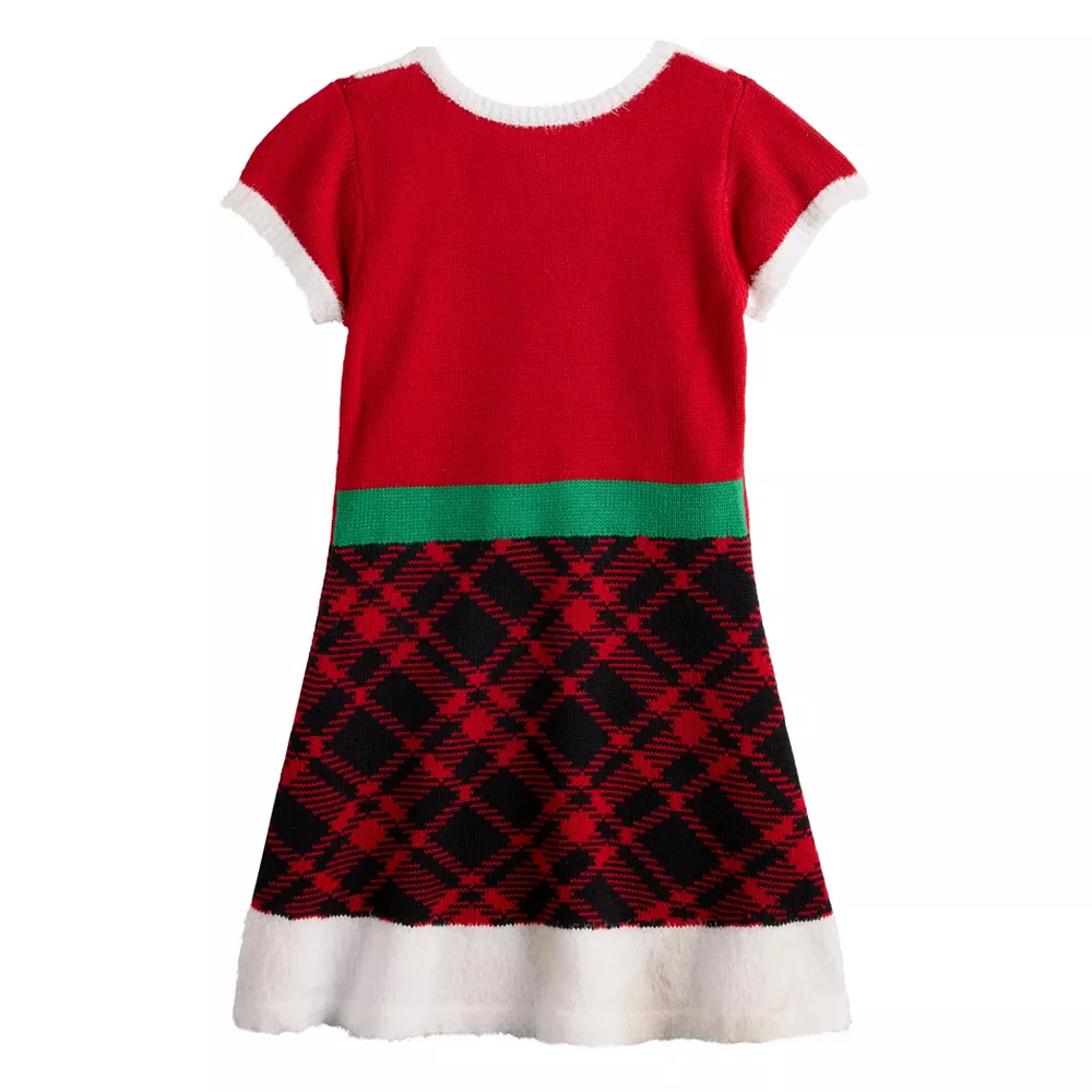 She’ll love to dress up in the seasonal style of this girls’ Celebrate Together fit and flare candy cane Christmas dress.