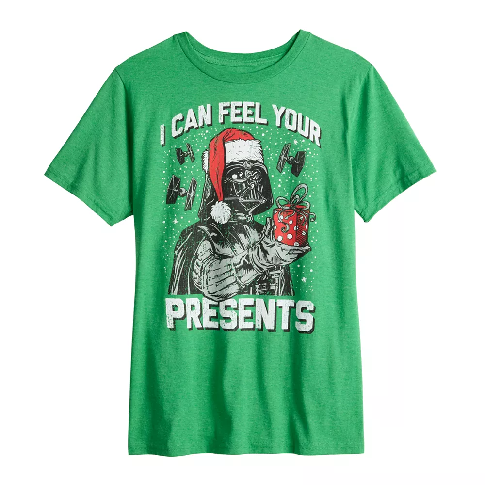 Spend the holiday with your favorite bad guy in this men’s Star Wars Darth Vader holiday graphic tee.
