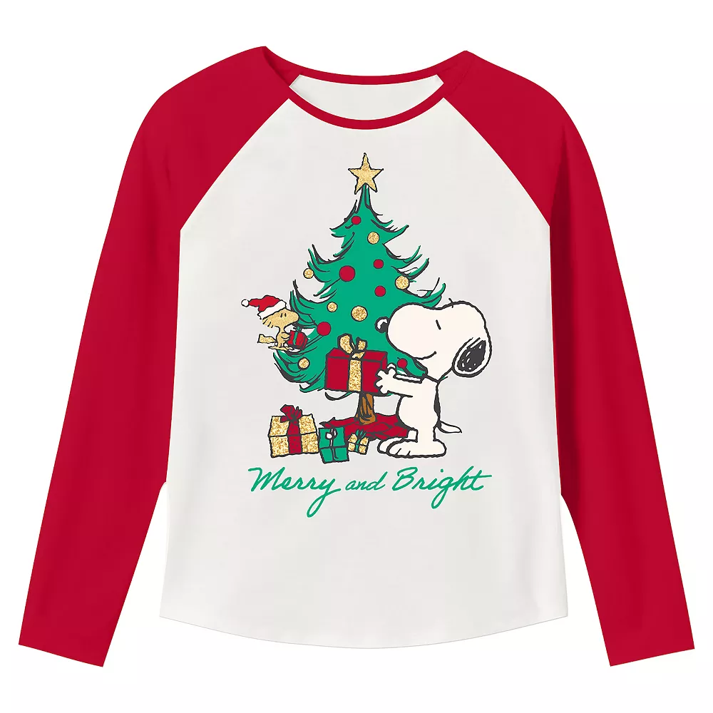 Get her in the holiday spirit with this festive toddler girls’ Peanuts raglan sleeve glitter graphic tee from Jumping Beans.