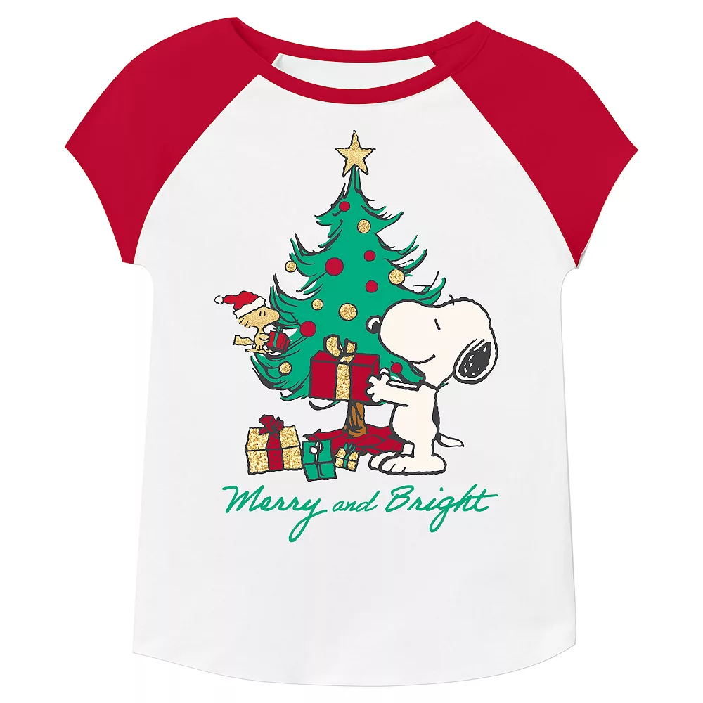 She’ll be in the holiday spirit in this festive toddler girls’ Peanuts glitter graphic tee from Jumping Beans.